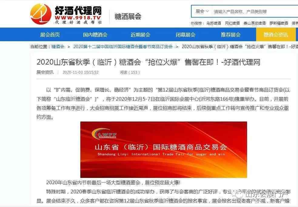 近年来,山东省秋季(临沂)糖酒会早已成为国内外酒来、食品企业布局鲁南及苏北市场的必参例会,是各大食品品牌立足山东、辐射全国的战略制高点。2020山东省秋季(临沂)糖酒会展位即将售馨,占得先机、觅得良位,决胜春节大商机,就来山东秋季临沂糖酒会。
