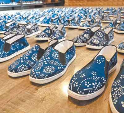 邵阳蓝印花布制作的鞋子。 银小雄摄(人民视觉)