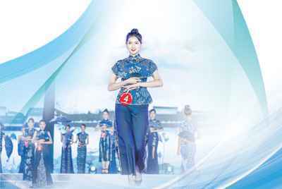 2019年在湖南崀山举行的环球旅游小姐国际大赛上,邵阳蓝印花布服饰成为模特的展示服装。 蒋路遥摄(人民视觉)