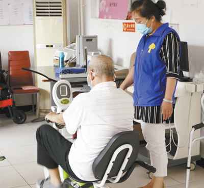 北京市丰台区康助护养院宛平城养老驿站内,老人在做康复训练。 新华社记者 李 欣摄