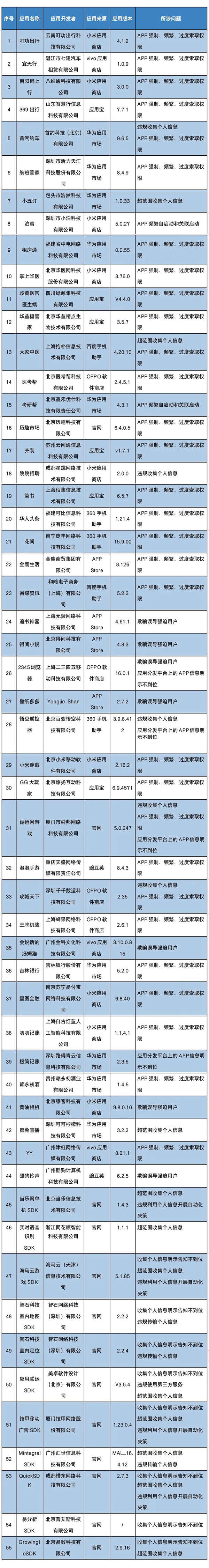 工业和信息化部通报存在问题的APP(SDK)名单。